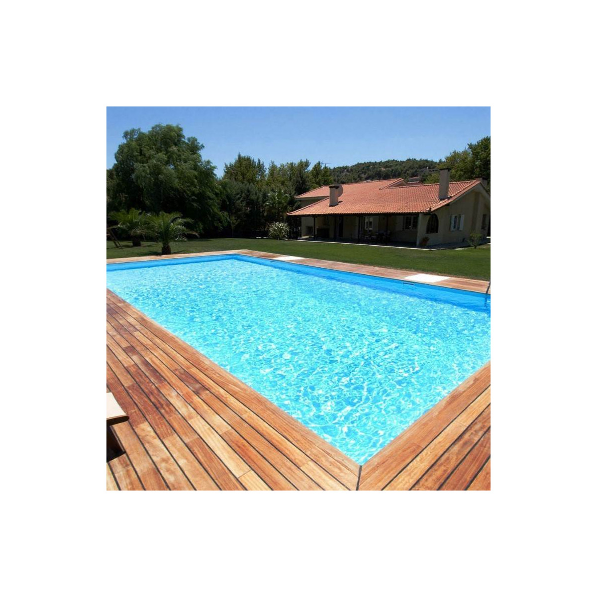Le PVC armé Bleu France se rapproche fortement de la couleur bleu clair. Le rendu de l'eau vous offre un bleu plus intense que le bleu pale.