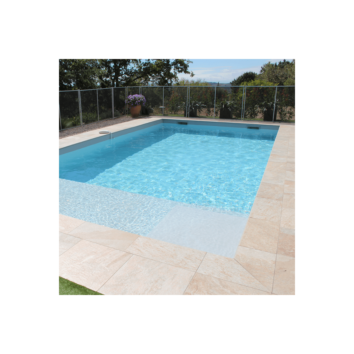 Si vous optez pour un liner PVC armé Haogenplast StoneFlex, votre piscine sera donc automatiquement antidérapante et ça ne sera donc pas une option à rajouter en supplément.